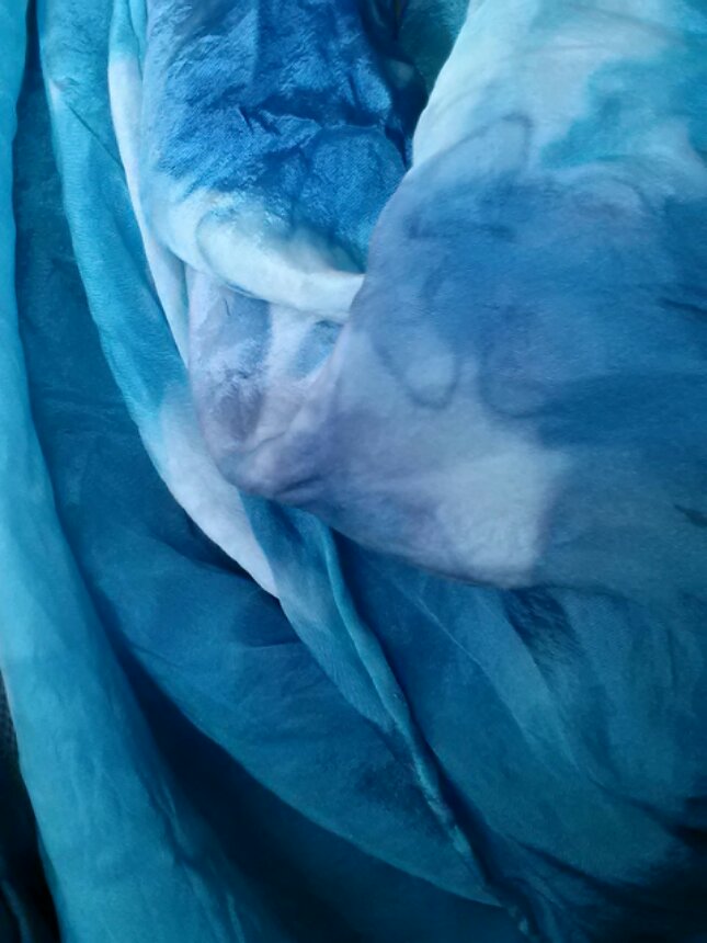 I should explain myself! This is the scarf I am wearing right now….delightful blues!
