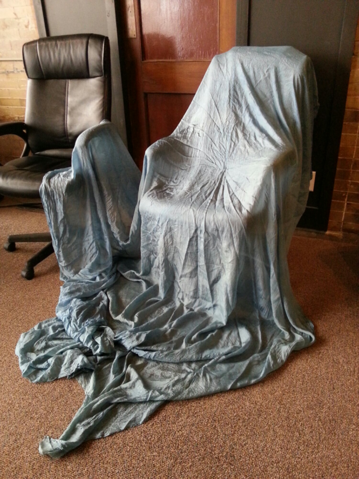 One of the great things about being an installation artist is the little delightful moments that pop up during the process. Here’s a chair and a silk covered ghost of a chair- so beautiful!