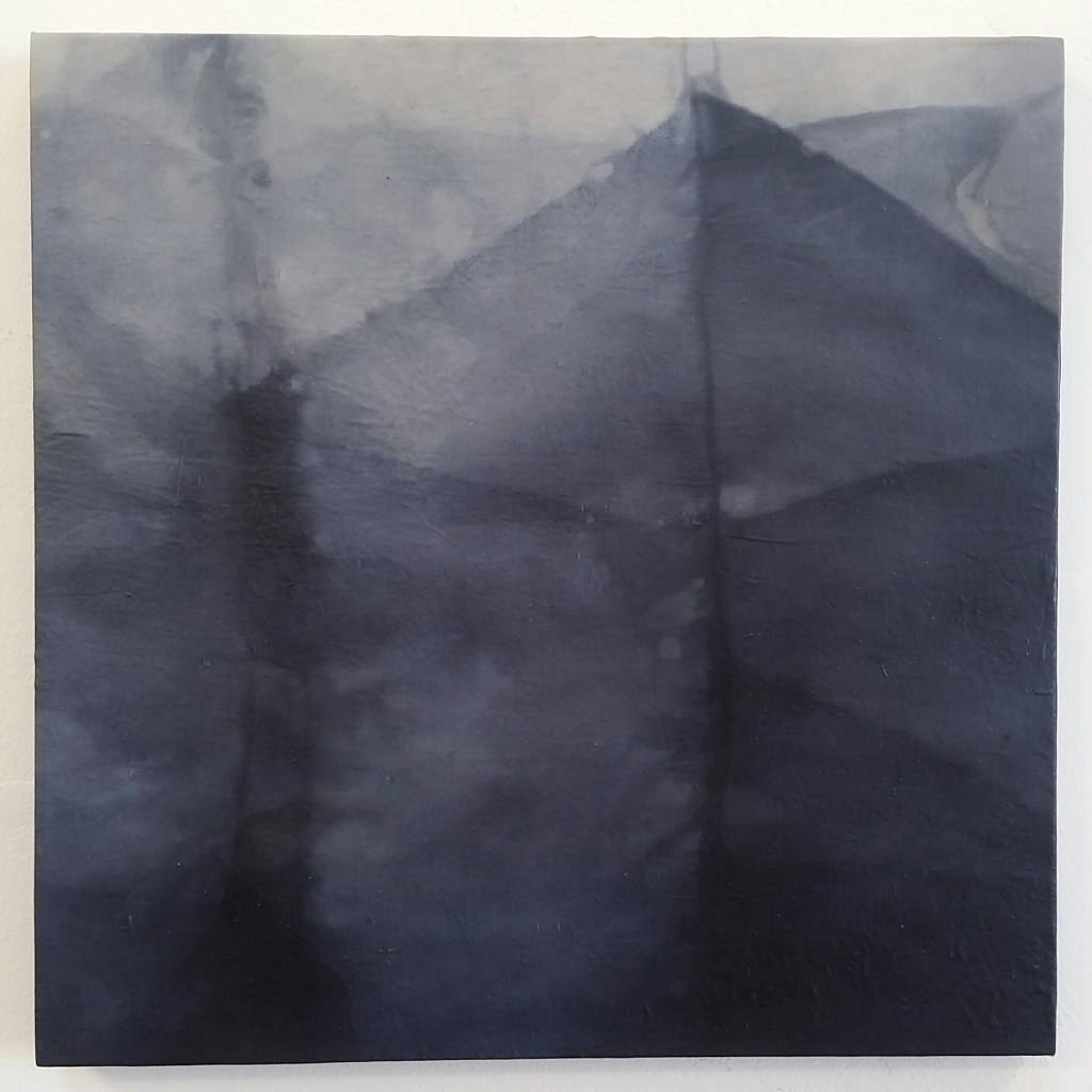 This new body of work consists of hand-colored silk adhered to panel using encaustic wax. The wax is then layered over the silk to add depth to the layers of color. The forms are derived from interpretations of cloud forms, wave structures, and the ever present layers of the mountains that I am so fortunate to see on a daily basis.